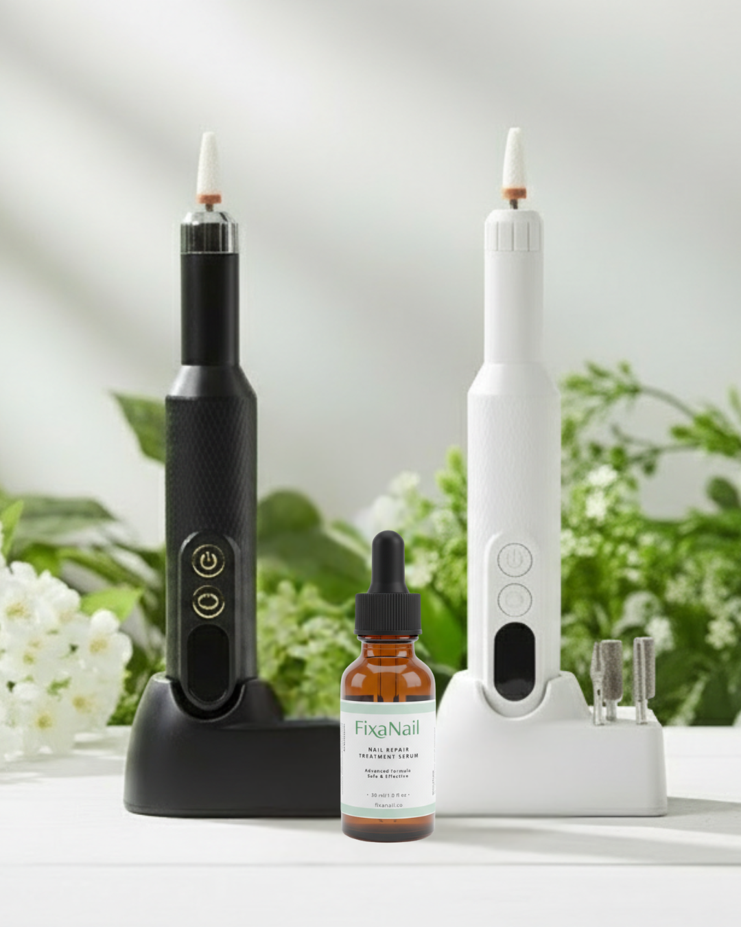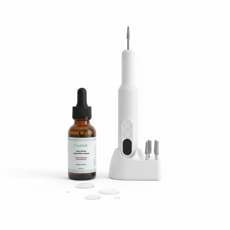 File, using the Nail Rescue Max once per week with light pressure, then apply the FixaNail™ serum twice daily (AM/PM) on clean, dry nails - and that's it. See your nails shift from thick and discolored to cleaner, smoother, and visibly healthier nails in weeks.